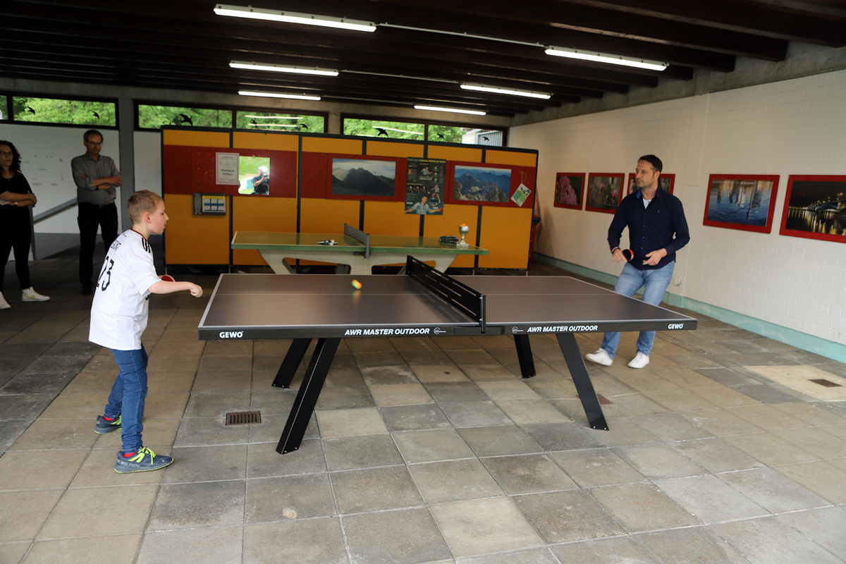 Ab sofort steht im Niedernhausener Waldschwimmbad ein weiterer überdachter Outdoortisch für alle Tischtennisfans bereit. Dank des Zusammenwirkens der TG Oberjosbach und der Gemeinde Niedernhausen gelang es, einen der zunächst zehn – vom Hessischen Tischtennis-Verband e.V. zu vergebenden – Outdoor-Tischtennistische nach Niedernhausen zu holen.